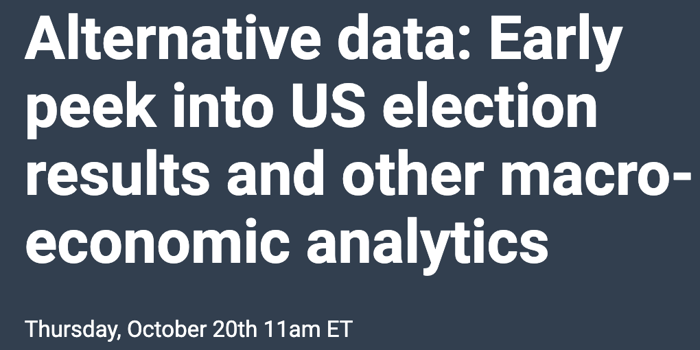 At the Alternative Data webinar on October 20, Thanh-Long Huynh will discuss case studies, including the US mid-term election, assessing macroeconomic regime with real-time macro analysis, and looking at commodity markets through the lens of alternative data.