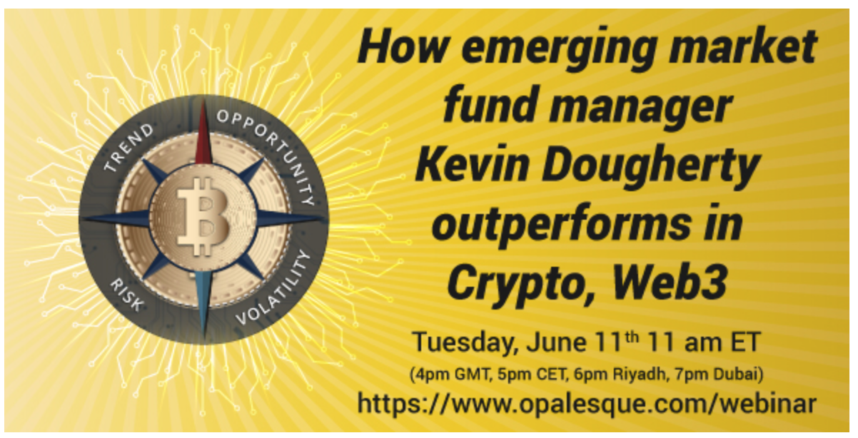 He will be presenting his investment process at Opalesque's next webinar, "How emerging market fund manager Kevin Dougherty outperforms in Crypto, Web3", on Tuesday 11th June (details below).