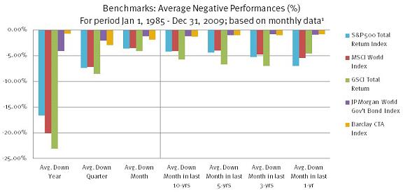 Managed Futures Myths, Debunked The following discussion is based on research from MF Global Alternative Investment Strategies. Adam Rochlin, senior vice president and head of MF Global Alternative Investment Strategies, provided commentary. The charts are from a report by his team. Chidem Kurdas edited the material. There are common misconceptions that get in the way of an open-minded assessment of investment options. We tackle three beliefs that cause investors to regard managed futures as an inferior asset class compared to stocks and bonds. Myth Number One: Downside Volatility Managed futures are volatile because prices change frequently. There is nothing wrong with volatility in general-it's just a measure of how far something goes up and down. But when people worry about this, they think of downside volatility and how deep the troughs are, not upside price change. Let's compare asset classes for the past 25 years. When you look at the number of negative periods, managed futures do have slightly more drawdowns. However, managed futures lost less than other investments. In particular, there is a dramatic difference in the magnitude of the worst drawdowns. Compared to US and international stocks, managed futures has much shallower troughs (chart 1). CHART 1 It is worth noting that the same pattern is seen for managed futures versus long-only commodity investments, represented by the Goldman Sachs Commodity Index (gold vs. green boxes in chart 1). Managed futures has more drawdowns but long-only commodities have substantially deeper troughs. The comparison favors managed futures for average drawdowns but is especially pronounced for the worst drawdowns. Similar conclusions arise when you look at the magnitude of negative performance for shorter periods within the full 25-year span. Compared to other asset classes, the troughs are less deep for managed futures for the last 10 years, five years and three years (chart 2). Only government bonds had comparable shallow losses. What it means is that managed futures is better at preserving capital, which allows commodity trading advisors to make more money over time. What is more, this differentiation in performance adds long term diversity to a portfolio. CHART 2 Myth Number Two: Only for Hard Times There is a perception that investing in commodities is very good insurance against extreme events like the debt crisis and global shakedown. During those times real assets tend to perform better than financial assets. If CTAs are insurance, investors reason, allocate to them when you need the insurance. But that is only half the story. Yes, managed futures does provide protection in equity bear markets. Chart 3 shows two bearish periods, 2000-2002 and 2007-2009, when having CTAs in a portfolio provided gains against the losses in US and international stocks and in the latter period in long-only commodities as well. And yes, in a striking bull market like 1995-1999, stocks leave managed futures behind. CHART 3 But managed futures still had positive returns in the bullish late 1980s and 1990s (chart 4). It is a misperception that managed futures perform well only when traditional asset classes underperform. You need to be in the strategy during bull markets as well as bear markets to get capital appreciation. CHART 4 It is not a good idea to invest only for bear market insurance because then you miss out on the market cycle. Trying to time entry and exit will hurt you more than help you, because very few can consistently time when to enter and exit a certain asset class. Warren Buffett may do it, but not many people can. To get the full benefit it is best to buy and hold, not time. Comparing managed futures and the MSCI World Index shows that these two asset classes are complementary. Nobody wants to miss the gains of international growth, but global stocks tend to go through sharp downturns˘â‚¬â€ťmanaged futures does well during those times, so there is a compelling case that putting them together is beneficial. Myth Number Three: Not for the Long Haul There is an impression that managed futures have not performed well over the long term and are exclusively a short-term strategy. But for the 25 years from January 1985 through December 2009, average returns from managed futures are comparable to the other benchmarks (chart 5). Over multiple durations of time, with the exception of 2009, managed futures˘â‚¬â„˘ average monthly returns have outperformed most other benchmarks. While managed futures does not perform better than stocks during up markets, this asset class has competitive monthly returns overall. The peaks are not as high for various periods, but the troughs are not as deep, so managed futures has the advantage of preserving capital over time. Note that even in 2009, a bad year for managed futures, performance was nowhere as bad as it was for equities in 2008. CHART 5 ![]() Regarding commodities, more than a few sophisticated investors look to this asset class for diversification and return, but increasingly they do not want long-only commodities. Long/short commodities is getting more attention. That should help CTAs attract assets. |