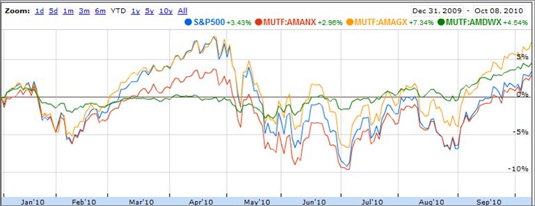 marketplace? Does SATURNA have any new products in the pipeline? The only effect that the financial crisis has had on the funds is that we have benefited from it, due to an increase in Assets under Management. As our performance dramatically outperformed conventional peers, many conventional investors have been buying our funds. Sharia restrictions towards investment in conventional financial institutions have also benefited Amana shareholders keeping returns relatively insulated from the effects of the current economic downturn. The Amana Growth Fund and its Developing World Fund have shown particular resilience outperforming the broader market in the in the first three quarters of 2010, as the following table illustrates. Fund Returns vs. S & P 500 Index