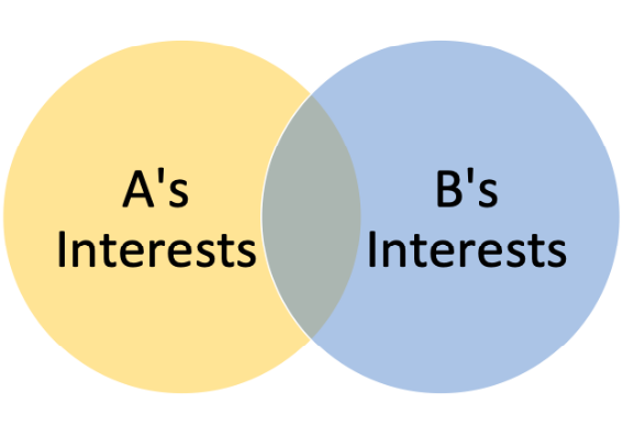 David is a second generation family member who went from software developer to technology entrepreneur to family advisor, writer and speaker. He wrote the bestselling book Transition on intergenerational wealth, has a science degree, a masters in entrepreneurship, and is an Adjunct Professor at Swinburne University (family governance and entrepreneurship). Conflict Resolution in Wealthy Families When it comes to conflict resolution, families – and especially wealthy families – pose additional challenges. In this article, I will present a framework for conflict resolution, and then see how it can be used to understand family conflicts and their resolution, and derive some learnings about what techniques are and are not helpful in that context. In this model, there are essentially three methods to eliminate conflict: power, rights, and interests. This is derived from the Harvard University “Getting to Yes” theory of negotiation. 1. Power is a very effective way to resolve a conflict. For example, if a young child says “I want to do X”, and their parents do not want them to, they can simply say “no”, and the conflict is quickly and simply resolved. In this case, there is a power imbalance between parents and (young) children and they have sufficient authority that a “no” is adhered to. It is crude, but it works. A more salient example might be when an adult family member wishes to gain access to the family wealth, and the assets are held in a trust where control of that wealth rests entirely with the older generation. In that case too, there is a power imbalance in respect of the assets, and a simple “no” will quickly resolve any conflict over deployment of the assets. While this method works remarkably well, it doesn’t truly end the conflict. Because one party’s power has been invoked, the other party is by definition “disempowered” through the process. Being on the other end of the exercise of power can lead to resentment and hurt feelings which can fester and blow up at a future date. When using power to resolve a conflict, one may win the battle but lose the war. This is both because of the very side effect of using power, and also because it’s very difficult to hold on to power forever. That means the use of power can have a time limit. 2. Resolving a conflict using rights is the next step up in sophistication. In that scenario, each party to the conflict submits to some external and independent standard and uses that to resolve their differences. The standard could be a contract between the parties, the law, an arbitrator or mediator, or a court of law (as far as the parties choose to take it). Because this method relies on a standard, it can result in a fairer outcome than the use of power. One party may not be happy with the outcome, but having agreed to the standard, it is reasonable that they must abide by the ruling that flows from that standard. Returning to our family wealth example, a family member seeks access to the wealth, and there is a family agreement in place that sets down the distribution policy. The family agreement is the standard for resolving the conflict – the set of rules that all family members accept and adhere to. If that standard is unacceptable, it may be challenged by using another standard, such as through litigation. Even in that case, the same method of rights is being used to resolve the conflict. Results using this method do not have a time limit, as when someone uses power but that power is eventually gone. Depending on the standard chosen, the process can take much longer. If matters end up in court, they can drag on for years, chew up huge legal costs, and cause significant collateral damage to relationships (although those relationships may already have been broken well before the decision to litigate is taken). Significantly, while the process is fairer than the use of power, it will result in one party being deemed ‘right’, and another party being ‘wrong’, which may leave the ‘losing’ party aggrieved by the process. That again means the conflict may not truly go away, especially when the parties remain connected by family bonds. 3. That brings us to the optimal method of dispute resolution, using interests. In the previous two methods, we never delved deeper than the face of the conflict: one party wants X, and the other party wants Y (or doesn’t want X). When we seek to resolve the dispute using interests, we start asking a very important question: “what do you really want ” This is especially relevant in family disputes because the manifestation of conflict is often just that – a manifestation of deeper, family-related issues that just happen to be expressed in financial terms. For example, when a younger family member asks to be appointed CEO of the family business, they may really want to correct perceived favouritism, for their talents to be suitably recognised, or to be in a position of power where they can exact revenge on other family members. The current CEO – an older family member – who says “no” may actually be desperate to cling to their position because their personal identity is bound up in their role within the family business, or because they have “reserved” the CEO position for another, more favoured, member of the family. To resolve the conflict using interests, the parties come together and discuss their interests – what they really want to achieve and what sits behind the position they expressed. This is best done with the assistance of an independent mediator or facilitator who can help the parties draw out and discuss their true interests. They may be more comfortable discussing their interests first with the facilitator, and getting assistance in presenting them when the other party is present. Simplistically, we can express the interests of each party using a Venn diagram, as below.