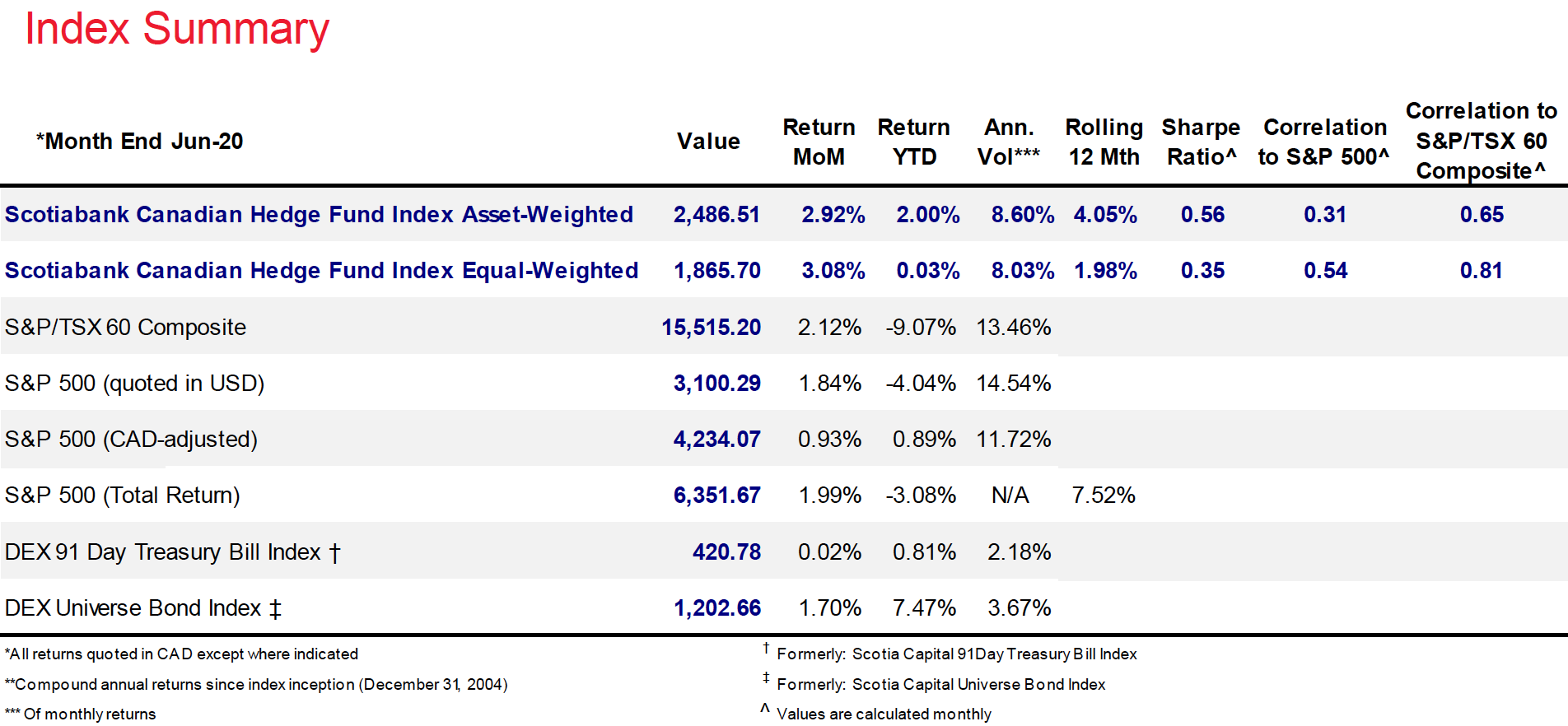 Opalesque Industry Update - The Scotiabank Canadian Hedge Fund Index ended