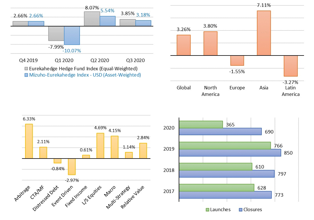 On a year to date basis, global hedge funds were up 3.26% over the first three quarters of 2020.